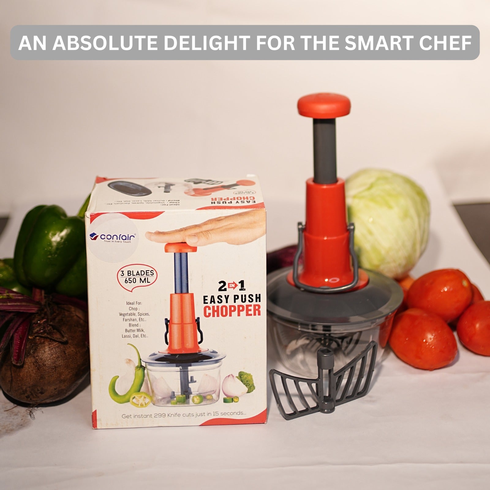 - Effortless Chopping: Push-to-chop mechanism makes cutting vegetables and fruits quick and easy.